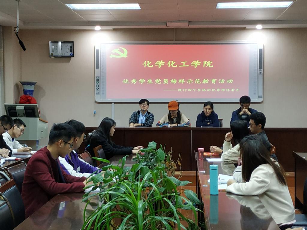 10月17日晚,太阳成城集团tyc234cc官网在化学楼407开展“优秀员工党员榜样示范教育”活动。化学化工学员四名优秀员工党员代表王润萌、李铁炎、任芳、杨娇娇及公司第32期党员发展对象培训班学员一同参加此次活动。