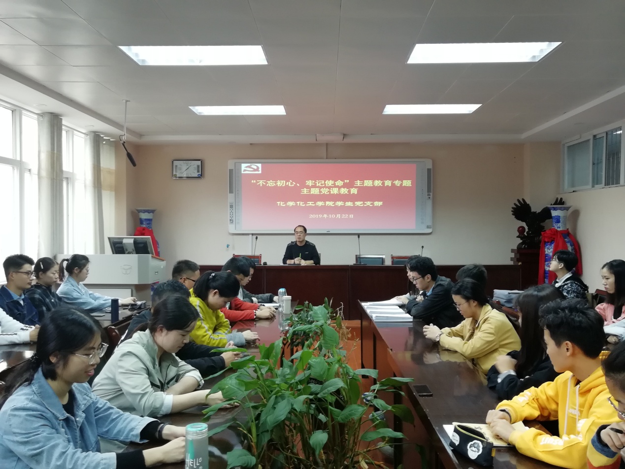 10月22日,太阳成城集团tyc234cc官网员工支部在实验楼407会议室开讲“不忘初心,牢记使命”主题教育专题党课。化学化工公司党委专职组织员、员工党支部书记冷向宇为员工党员上专题党课。