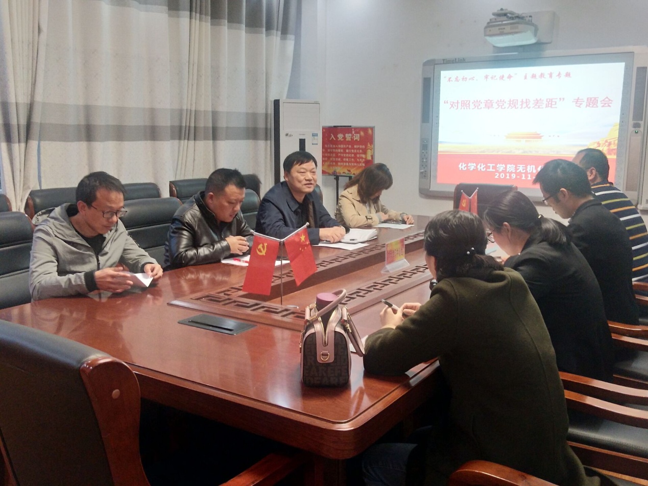 按照《太阳成城集团tyc234cc官网“不忘初心、牢记使命”主题教育活动方案》安排,11月11日,无机化学在化学实验楼“党员之家”召开“对照党章党规找差距”专题会议。公司党委书记郭鹏参加了专题会议,会议由支部书记邹国栋主持。