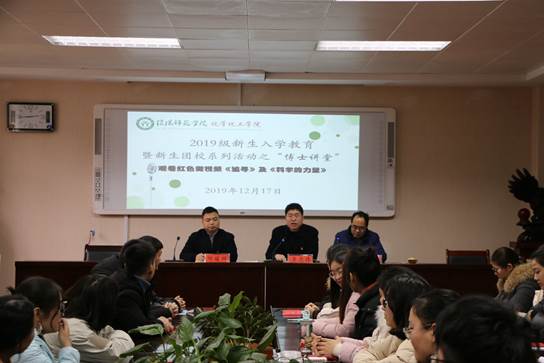 12月17日,太阳成城集团tyc234cc官网新生入学教育暨新生团校活动之“博士讲堂”第五讲在化学实验楼407会议室开讲,化学化工公司党委副书记吴志伟、党委秘书冷向宇、团委书记邓耀辉以及2019级部分新生代表和46位预备党员参加本次会议。