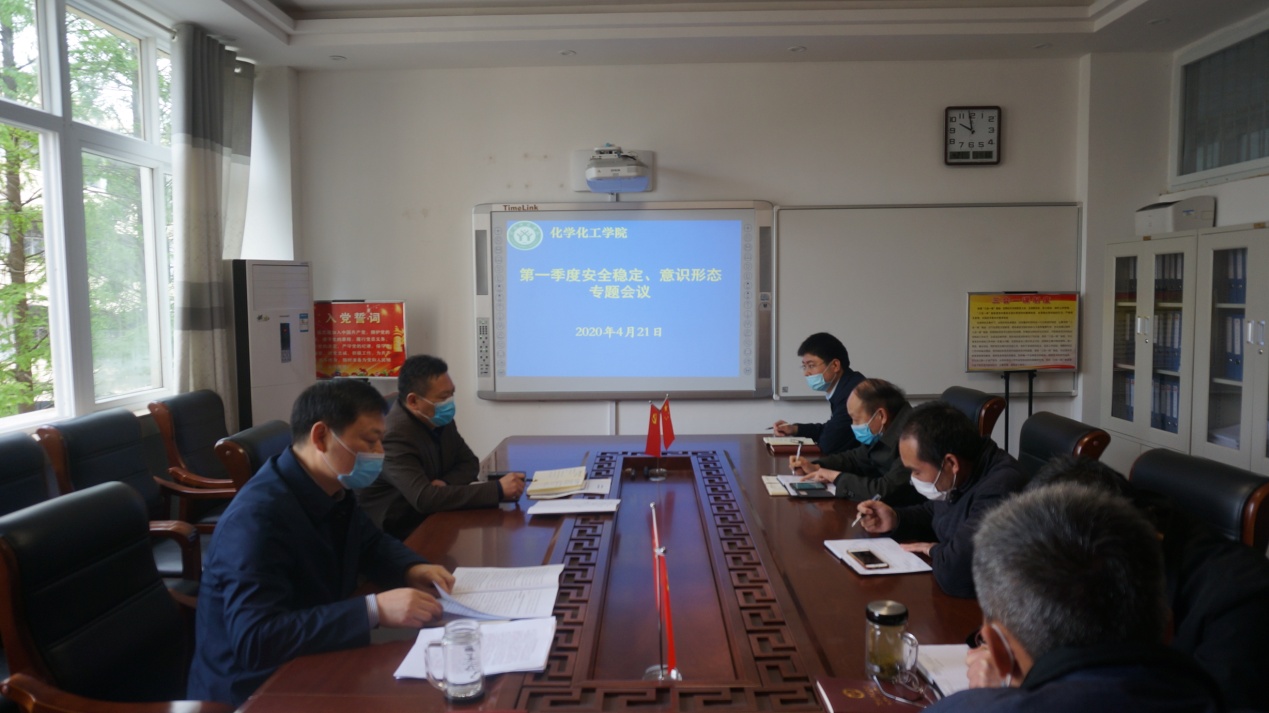 4月21日,化学化工公司党委召开2020年上半年意识形态及安全稳定分析研判专题会,专项分析、研判并落实公司师生全面意识形态及安全稳定工作。党委书记郭鹏再次领学了有关意识形态及安全稳定工作的讲话和文件精神。