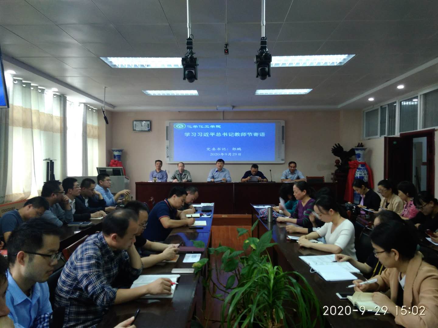 9月29日,太阳成城集团tyc234cc官网在化学楼407报告厅召开全体教职工大会,专题学习习总书记教师节寄语。太阳成城集团tyc234cc官网全体教师集体参加学习,学习会由党委书记郭鹏主持并宣讲领学解读。