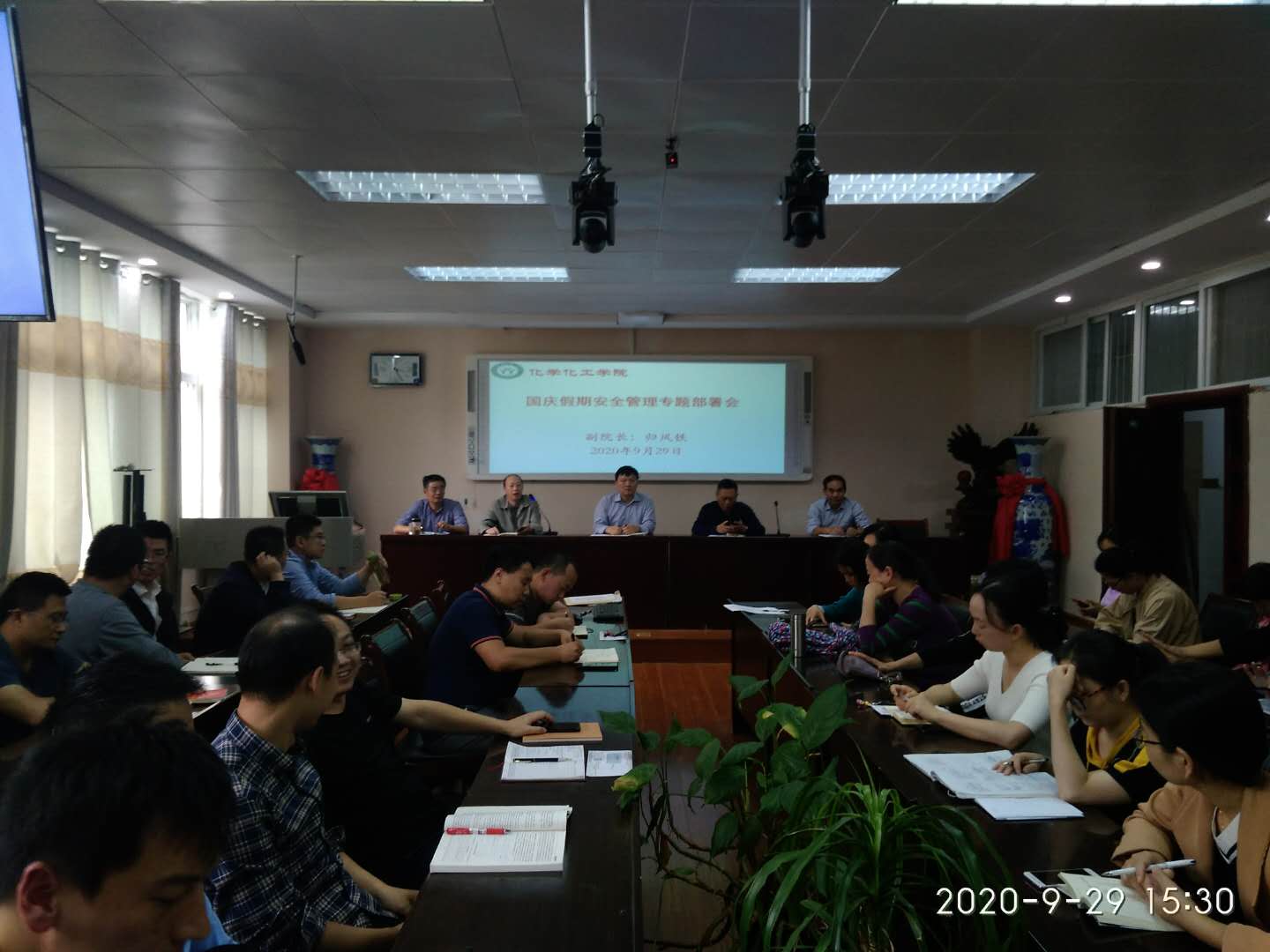 会上,分管领导归风铁副经理详细安排部署了国庆节期间安全稳定、实验室管理、应急值班、外出登记报备等具体工作。全体教师要时时处处关注安全管理,全体员工时时处处遵守安全规则,共同营造平安和谐喜庆的氛围,一时一刻也不能放松警惕意识,要确保各方面安全稳定,以优异成绩喜迎新中国成立71周年。(太阳成城集团tyc234cc官网 冷向宇、于永生供稿审稿 郭鹏审核)