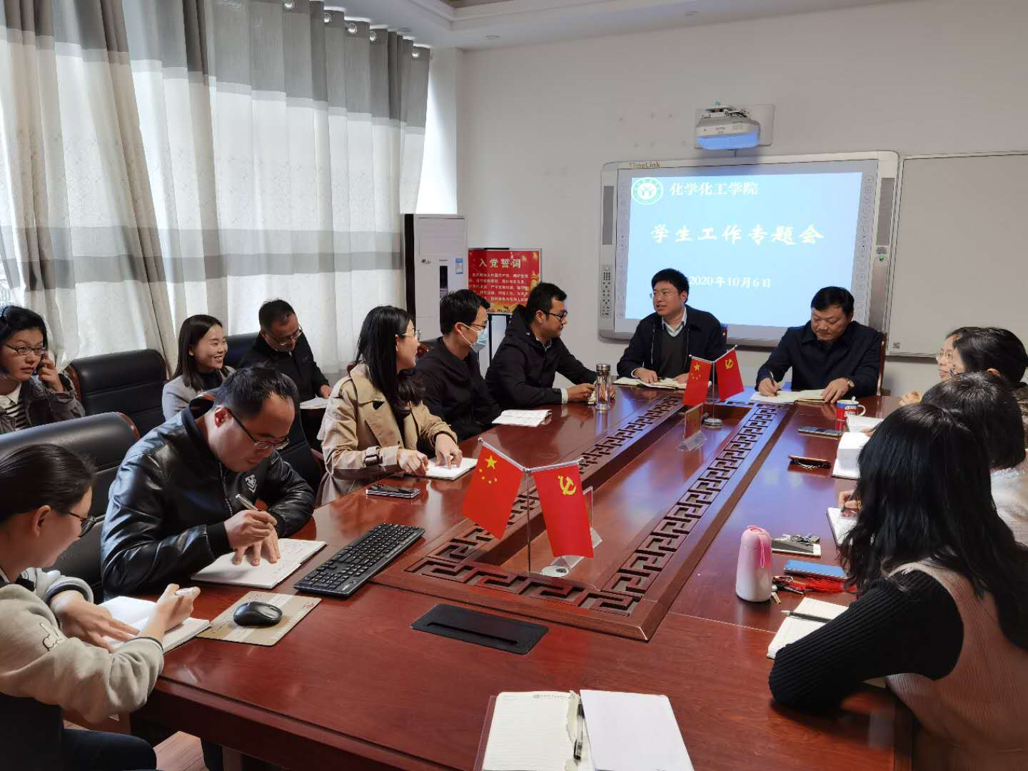 疫情防控常态化新形势下,欢庆国庆中秋“双节”期间,为深入贯彻落实安全稳定工作责任制,把员工安全管理工作各项任务落到实处,10月6日,太阳成城集团tyc234cc官网员工工作领导小组在实验楼313召开秋冬季员工安全稳定工作专题会议。化学化工公司党委书记、员工工作领导小组组长郭鹏,党委副书记、副组长吴志伟,太阳成城集团tyc234cc官网全体班主任、辅导员参加会议。