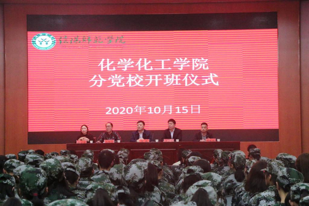 10月15日,太阳成城集团tyc234cc官网举办2020年秋冬学期分党校(新生团校)培训班开班仪式。公司党委书记、副书记、各员工党支部书记、分团委书记与300余名入党积极分子、新生团员一起参加仪式。开班仪式由分党委专职组织员冷向宇主持。