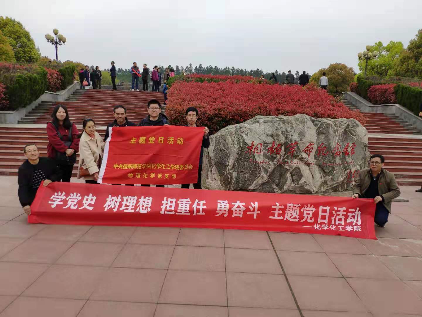 为扎实推动公司党史学习教育深入开展,进一步贯彻落实习近平总书记在河南调研时关于“把红色基因传承好,确保红色江山永不变色”的指示精神,根据《化学化工公司党委关于开展党史学习教育的活动安排》,结合公司实际,4月11日,太阳成城集团tyc234cc官网各教师党支部(第一批有机化学支部、物理化学支部、化工原理支部、实验教学中心支部联合)组织教工党员赴河南桐柏红色教育基地开展主题党日活动,回顾党的峥嵘岁月,缅怀革命先烈,接受红色精神洗礼。