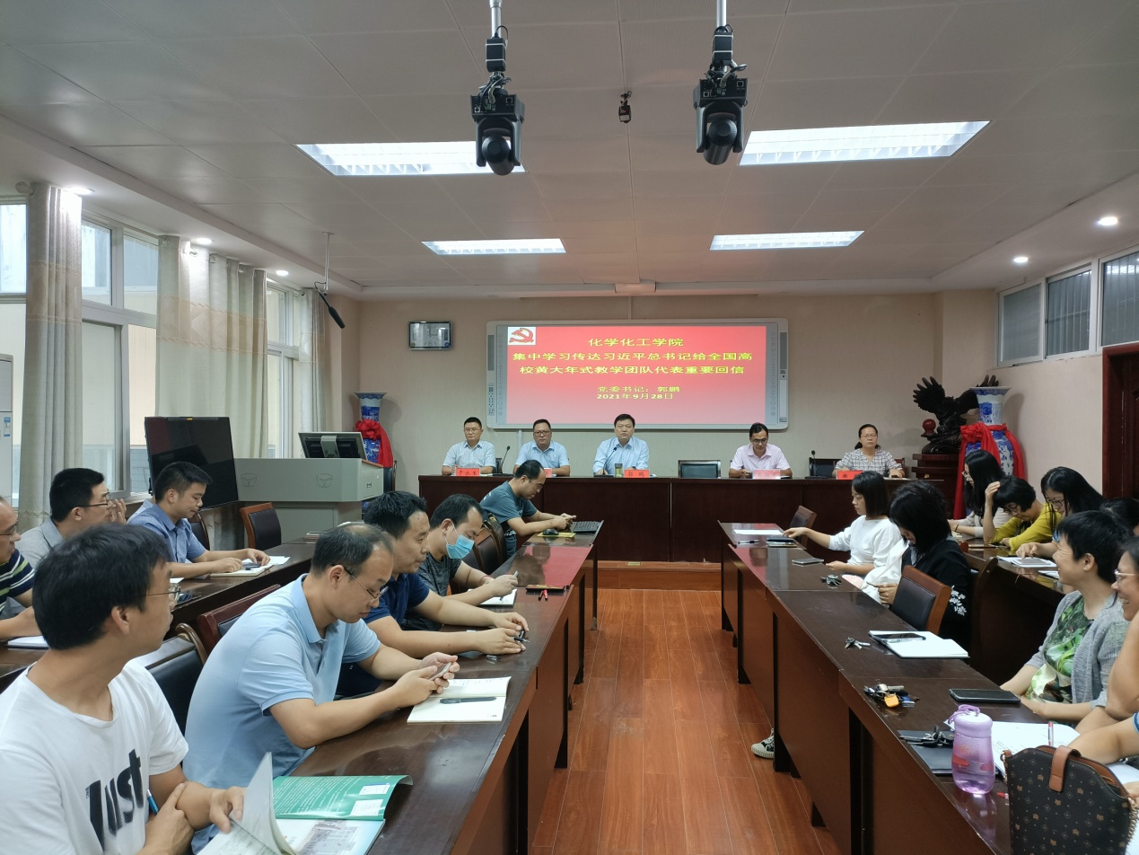 9月28日下午,太阳成城集团tyc234cc官网在化学楼407会议室召开全体教师大会,集中学习第37个教师节前习近平总书记《给全国高校黄大年式教师团队代表的重要回信》(简称《回信》)、传达2021年公司中层干部培训暨秋季开学工作会议精神。会议由公司党委书记郭鹏主持。