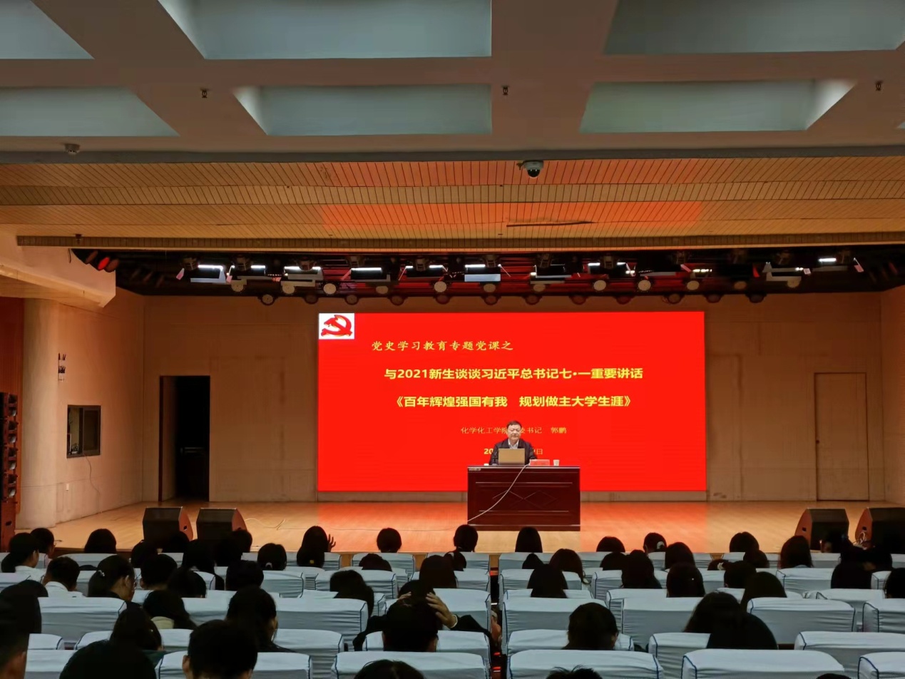 10月9日,化学化工公司党委书记郭鹏在公司业余党校和新生团校培训班开班仪式上,以《百年辉煌强国有我,规划做主老员工涯》为题,与2021级新生一起分享了《习近平总书记七.一重要讲话》学习体会。