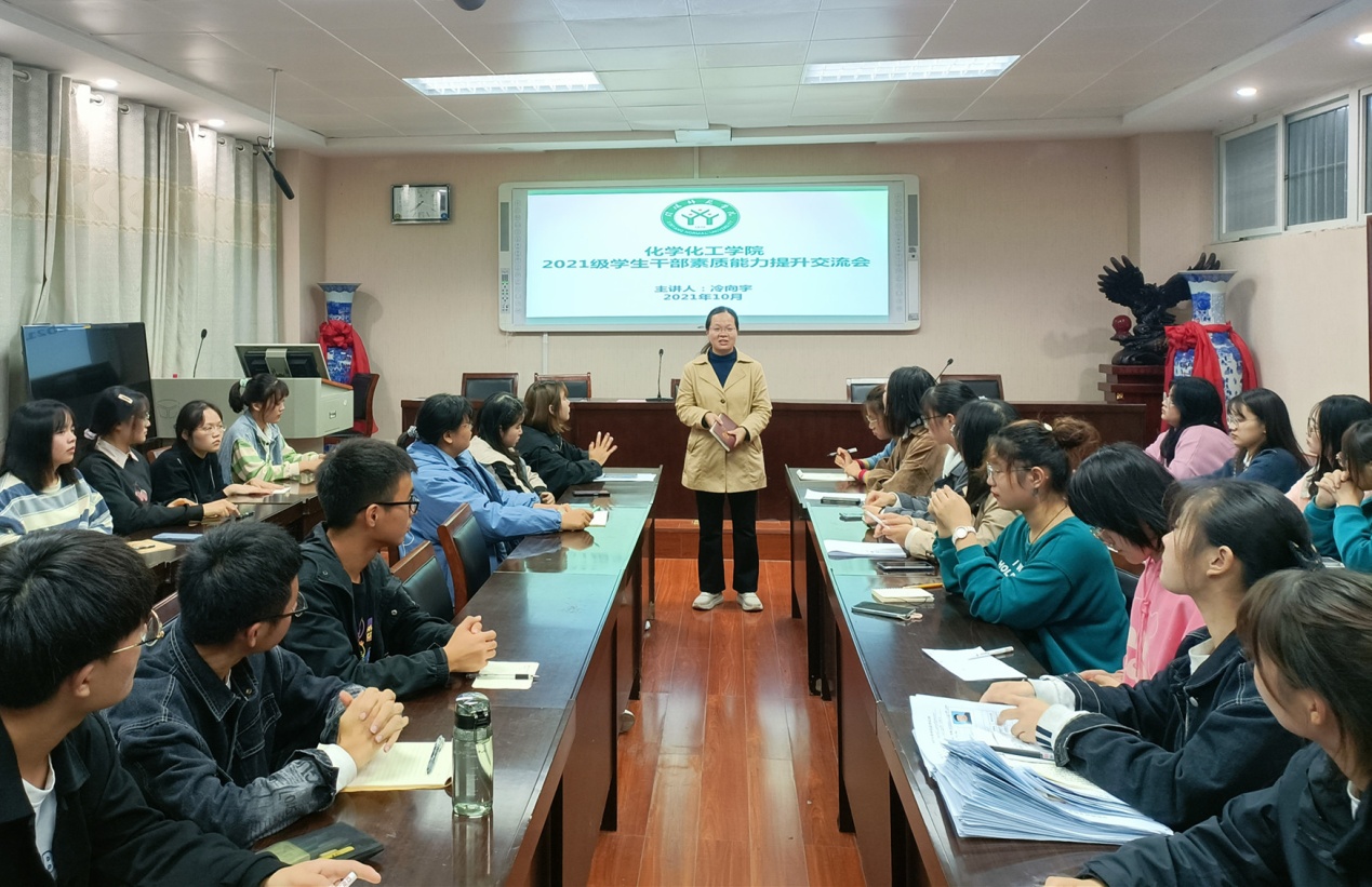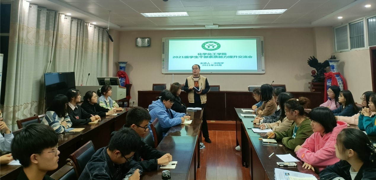10月14日,太阳成城集团tyc234cc官网在化学实验楼407会议室召开2021级员工干部素质能力提升交流会。化学化工公司党委副书记曲剧主持,新生辅导员冷向宇主讲,邓耀辉、赵方方、严赫参会。