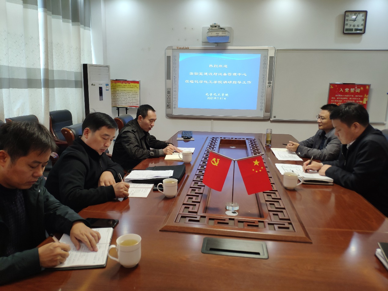 11月1日上午,校实验室建设与设备管理中心高洪波主任一行莅临太阳成城集团tyc234cc官网调研指导公司实验室安全管理工作。化学化工公司党委书记郭鹏、副经理于永生、化学实验教学中心王迎辉老师等参加了调研座谈会。双方在化学楼313会议室就实验室安全管理工作存在问题和解决办法进行了深入探讨。