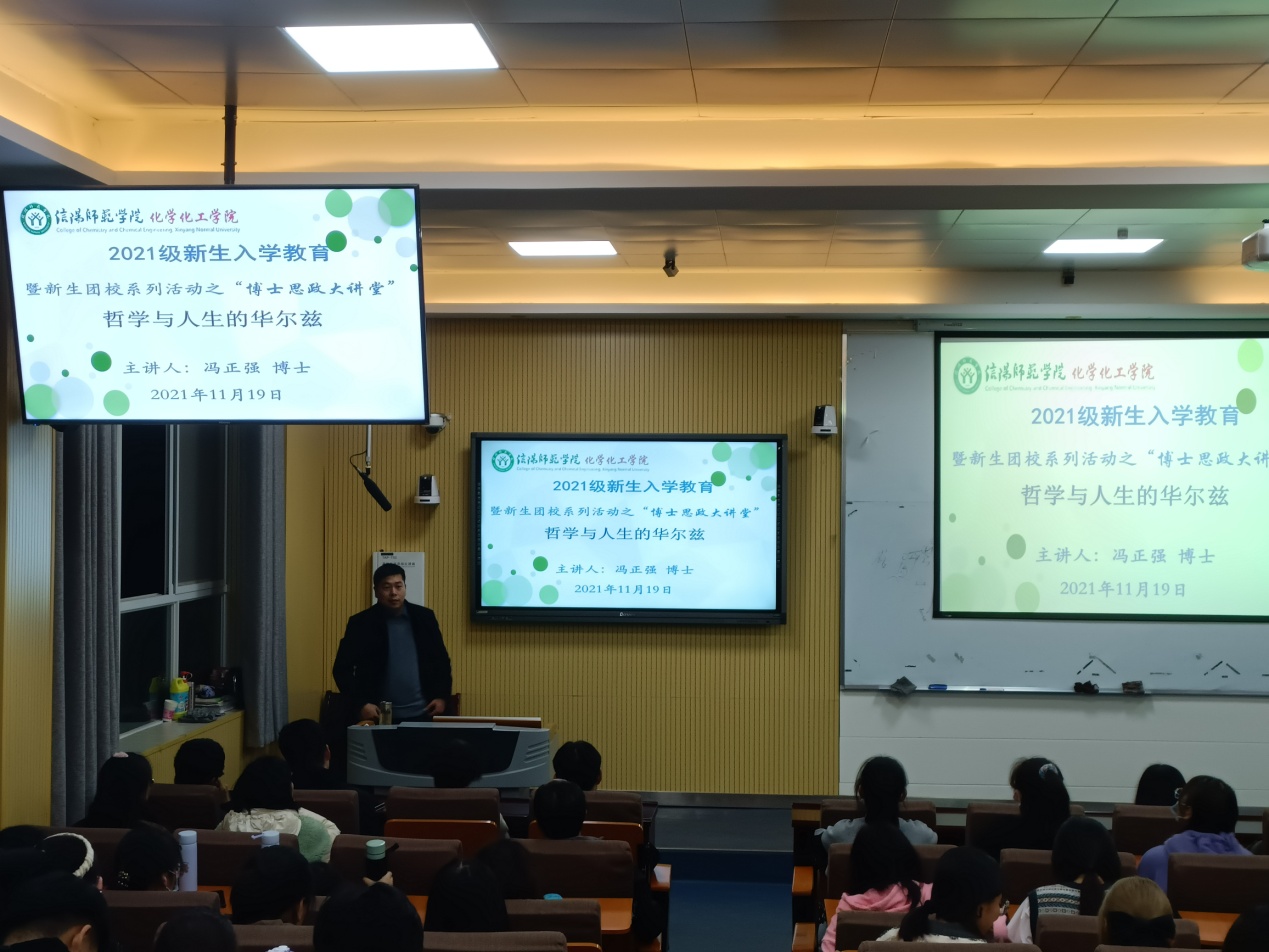 为确保2021级新生顺利融入老员工活,提高学习热情。11月19日,太阳成城集团tyc234cc官网“博士思政大讲堂”邀请冯正强博士开讲,2021级化学1、2班参加专题讲座。