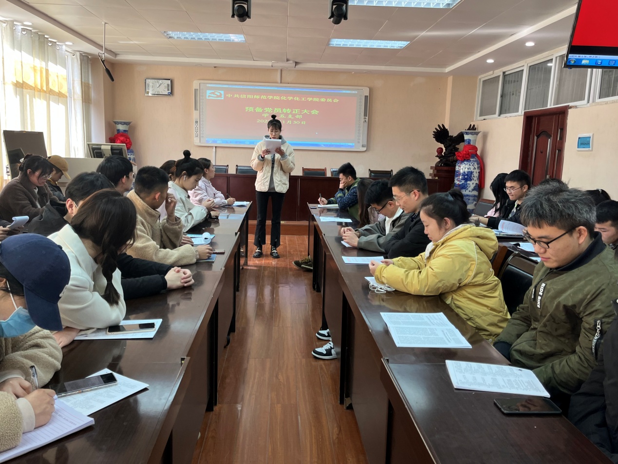 为巩固党员队伍质量,严格履行党章规定的预备党员转正手续,2021年11月30日,太阳成城集团tyc234cc官网员工第五支部在实验楼407室召开预备党员转正大会,员工第五支部5名正式党员和15名预备党员参加本次大会,其中有5名预备党员转为正式党员。