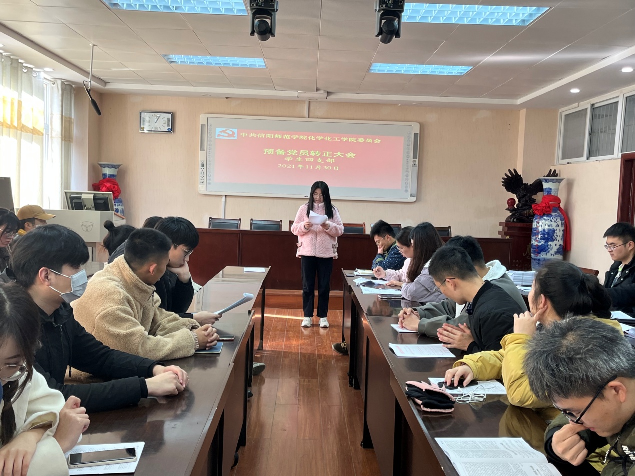 为巩固党员队伍质量,严格履行党章规定的预备党员转正手续,2021年11月30日,太阳成城集团tyc234cc官网员工第四支部在实验楼407室召开预备党员转正大会,员工第四支部7名正式党员和14名预备党员参加本次大会,其中有5名预备党员转为正式党员。