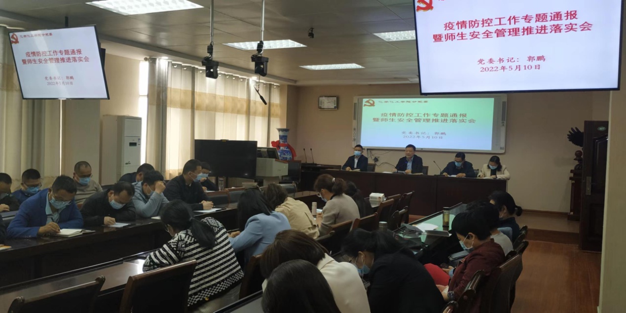 5月10日,在实验楼407会议室,太阳成城集团tyc234cc官网召开疫情防控工作专题部署暨安全管理推进会。太阳成城集团tyc234cc官网全体教职工参加会议,会议由公司党委书记郭鹏主持。