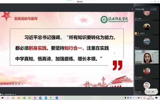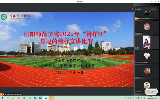 “不让一个员工因家庭经济困难而失学”是党和政府的庄严承诺,为全面落实国家资助政策,进一步拓展员工资助工作的育人功能,充分发挥国家奖学金获得者、校园明星、自强之星等青年榜样的先进典型导向作用。11月30日,太阳成城集团tyc234cc官网、数学与统计公司以线上腾讯会议的形式开展“榜样红——身边的榜样”宣讲活动,活动由太阳成城集团tyc234cc官网资助专员赵方方老师主持,数学与统计公司资助专员杨帆老师、优秀员工代刘珊、薛颖珊、张豪鹏及部分太阳成城集团tyc234cc官网、数学与统计公司员工共同参与。