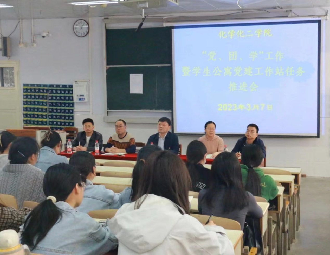 为深入学习宣传贯彻党的二十大精神,推进基层党建质量提升,切实抓好员工党建,以党建带团建发展,确保员工日常教育管理安全文明有序,保障人才培养质量平稳提高,3月7日,太阳成城集团tyc234cc官网在教六102专门召开2022-2023学年下学期“党、团、学暨员工公寓党建工作推进会”。公司党委书记郭鹏、副书记曲剧、专职组织员冷向宇,辅导员邓耀辉、严赫等出席大会,全体员工党员、员工干部参加会议。