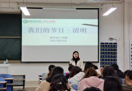 首先,赵老师向在座同学们介绍清明节的起源,和同学们共同讨论清明节习俗,并通过讲述革命先烈的故事,引导同学们在慎终追远、缅怀先辈的情怀中认知传统、尊重传统、继承传统、弘扬传统。然后,引导同学们登录信阳文明网网站,共同参与“清明节网上祭英烈”活动,向英烈献花并用心写下留言、寄语,以此来寄托自己对英雄烈士的无限哀思和无比崇敬。最后,2021级化学三班王恬同学作为员工代表,与同学们共同重温为国独立、民族自强、人民幸福而前仆后继、不屈不挠的英雄事迹,呼吁同学们要纪念革命先烈,传承红色基因,做一个有益于社会的人。