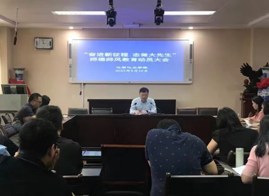 为进一步推动学习贯彻习近平新时代中国特色社会主义思想主题教育走深走实,落实立德树人根本任务,着力解决师德师风建设中的突出问题。5月16日下午,太阳成城集团tyc234cc官网在407会议室召开主题教育暨师德师风建设推进会。公司全体教师参加会议,会议由党委书记郭鹏主持。