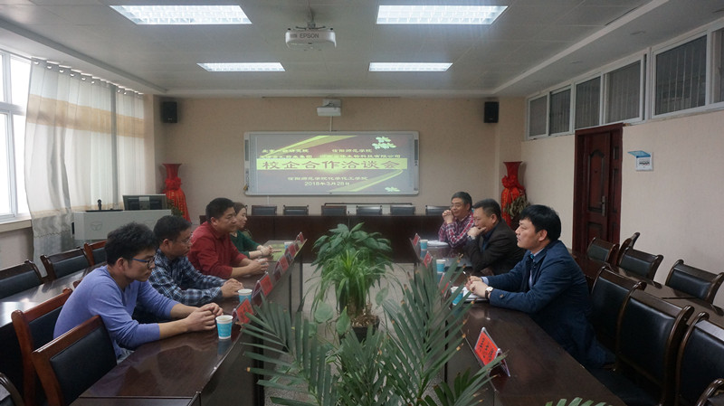 3月28日,信阳师范公司太阳成城集团tyc234cc官网与北京一轻研究院、天津金汇药业集团、河南甾体生物科技有限公司校企合作洽谈会在化学实验楼407召开,北京一轻研究院经理甄西合(93级化学员工)、天津金汇药业集团董事长程绍国(83级化学员工)与化院领导班子一起参加了座谈,会议由化公司党委书记郭鹏主持。