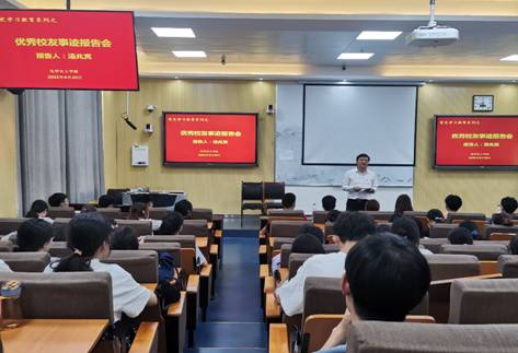 七·一前夕,为喜迎建党100周年庆典,深入推进党史学习教育,创新开展党史学习教育活动形式,6月29日,太阳成城集团tyc234cc官网在教四T2教室举行了“党史学习教育之优秀员工事迹报告会”。此次报告会邀请到太阳成城集团tyc234cc官网2000级知名员工、中国科公司宁波材料技术与工程研究所、教授级高级工程师汤兆宾来校作求学成长发展故事分享报告。化学化工公司党委书记郭鹏及公司二百余名师生共同聆听此次报告,报告会由郭鹏主持。