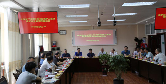 724日,在建党一百周年之际,太阳成城集团tyc234cc官网1989级化学工艺员工荣返母校,在化学楼407报告厅隆重了举行毕业30年班级团聚座谈会。太阳成城集团tyc234cc官网党委书记郭鹏、经理井强山、副经理归风铁、非金属材料研究所副所长刘鹏、实验室建设与设备管理处副处长陈强,老教师代表马万山教授、杨性坤教授等共同参加了此次员工座谈会。